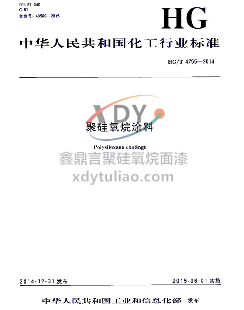 交聯型氟樹脂涂料化工行業(yè)標準HG/T 3792-2005:中華人民共和國化工行業(yè)標準 2005-07-10發(fā)布 2006-01-01實施 中華人民共和國國家發(fā)展和改革委員會發(fā)布 本標準適用于以含反應性官能團的氟樹脂為主要成膜物并加入顏填料(清漆不加)、溶劑、助劑等輔料作為主劑、以脂肪族多異氰酸酯樹脂為固化劑的雙組份常溫固化型建筑外墻用面漆和金屬表面用面漆。本標準還適用于以含反應性官能團的氟樹