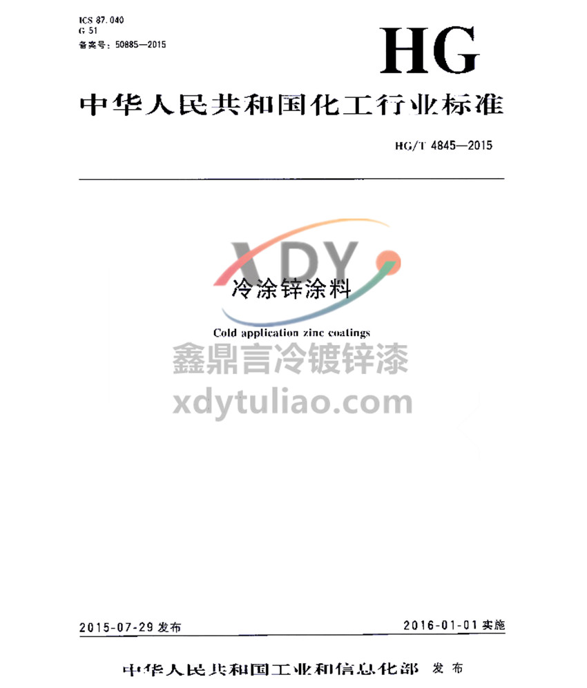 1、范圍 本標準規定了冷涂鋅涂料的要求,試驗方法,檢驗規則,標志、包裝和貯存。 本標準適用于常溫施涂的高鋅含量的有機涂料。該產品是由鋅粉、有機樹脂、溶劑等組成的單組分涂料,主要用于鋼鐵底材暴露表面的陰極防護及鍍(或噴)鋅涂層破壞的修補。 本標準不適用于多組分富鋅底漆。 2、規范性引用文件 下列文件對于本文件的應用是必不可少的。凡是注日期的引用文件,僅注日期的版本適用于本文件。凡是不注日期的引用文件,其最新版本(包括所有的修改單)適用于本文件。 GB/T1725-2007 色漆、清漆和塑料 不揮發物含量的測定 GB/T1728-1979 漆膜、膩子膜干燥時間測定法 GB/T1731-1993 漆膜柔韌性測定法 GB/T1732-1993 漆膜耐沖擊測定法 GB/T1766-2008 色漆和清漆 涂層老化的評級方法 GB/T1771-2007 色漆和清漆 耐中性鹽霧性能的測定 GB/T3186 色漆、清漆和色漆與清漆用原材料 取樣 GB/T5210-2006 色漆和清漆 拉開法附著力試驗 GB/T6890-2012 鋅粉 GB/T8170 數值修約規則與極限數值的表示和判定 GB/T8923.1 涂覆涂料前鋼材表面處理 表面清潔度的目視評定 第1部分:未涂覆過的鋼材表面和全面清除原有涂層后的鋼材表面的銹蝕等級和處理等級 GB/T9271-2008 色漆和清漆 標準試板 GB/T9278 涂料試樣狀態調節和試驗的溫濕度 GB/T9286-1998 色漆和清漆 漆膜的劃格試驗 GB/T9750 涂料產品包裝標志 GB/T13288.1 涂覆涂料前鋼材表面處理 噴射清理后的鋼材表面粗糙度特性 第1部分:用于評定噴射清理后的鋼材表面粗糙度的ISO表面粗糙度比較樣塊的技術要求和定義 GB/T13452.2-2008 色漆和清漆 漆膜厚度的測定 GB/T13491 涂料產品包裝通則 HG/T3668-2009 富鋅底漆 3、要求 產品應符合表1的要求。