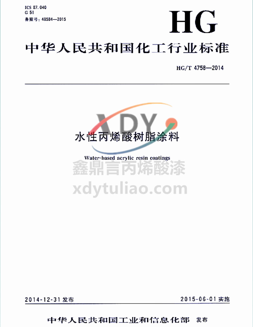 1、范圍 本標準規定了酚醛樹脂防腐涂料的分類、要求、試驗方法、檢驗規則、標志、包裝和貯存等內容。 本標準適用于由酚醛樹脂或改性酚醛樹脂為主要成膜物制成的酚醛樹脂涂料。主要用于交通工具、機械設備、木器家具等表面的保護和裝飾。 2、規范性引用文件 下列文件中的條款通過本標準的引用而成為本標準的條款。凡是注日期的引用文件,其隨后所有的修改單(不包括勘誤的內容)或修訂版均不適用于本標準,然而,鼓勵根據本標準達成協議的各方研究是否可使用這些文件的最新版本。凡是不住日期的引用文件,其最新版本適用于本標準。 GB/T1720-1979 漆膜附著力測定法 GB/T1725-2007 色漆、清漆和塑料 不揮發物含量的測定(ISO3251:2003,IDT) GB/T1726-1979 涂料遮蓋力測定法 GB/T1728-1979 漆膜、膩子膜干燥時間測定法 GB/T1730-2007 色漆和清漆 擺桿阻尼試驗)(ISO 1522:1998,MOD) GB/T1731-1993 漆膜柔韌性測定法 GB/T1732-1993 漆膜耐沖擊測定法 GB/T1733-1993 漆膜耐水性測定法 GB/T1766-2008 色漆和清漆 涂層老化的評級方法 GB/T3186 色漆、清漆和色漆與清漆用原材料 取樣(GB/T3186-2006,ISO15528:2000,IDT) GB/T6682 分析實驗室用水規格和試驗方法(GB/T6682-2008,ISO3696:1987,MOD) GB/T6753.1-2007 色漆、清漆和印刷油墨 研磨細度的測定(ISO1524:2000,IDT) GB/T6753.4-1998 色漆和清漆 用流出杯測定流出時間(eqv ISO2431:1993) GB/T8170 數值修約規則與極限數值的表示和判定 GB/T9278 涂料試樣狀態調節和試驗的溫濕度(GB/T9278-2008,ISO3270:1984,Paints and varnishes and their raw materials-Temperatures and humidities for conditioning and testing,IDT) GB/T9281.1-2008 透明液體 加氏顏色等級評定顏色 第1部分:目視法(ISO4630-1:2004,IDT) GB/T9750 涂料產品包裝標志 GB/T9754-2007 色漆和清漆 不含金屬顏料的色漆漆膜的20°、60°和85°鏡面光澤的測定(ISO2813:1994,IDT) GB/T13452.2 色漆和清漆 漆膜厚度的測定(GB/T13452.2-2008,ISO 2808:2007,IDT) GB/T13491 涂料產品包裝通則 3、產品分類 產品分為清漆和色漆兩類,其中色漆中分為調和漆、磁漆和底漆三類。 4、要求 產品應符合表1的技術要求。