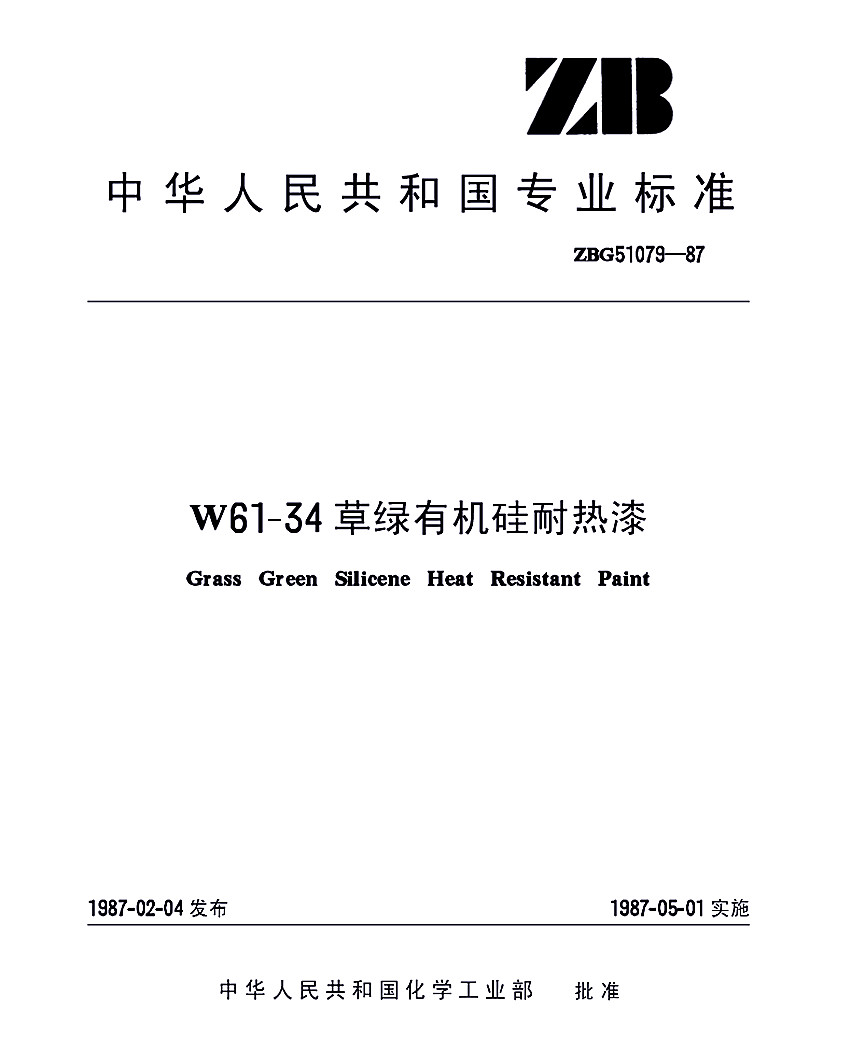 HG/T 3361-1987 W61-34草綠有機硅耐熱漆標準(原ZBG51079-87)-鑫鼎言耐高溫漆